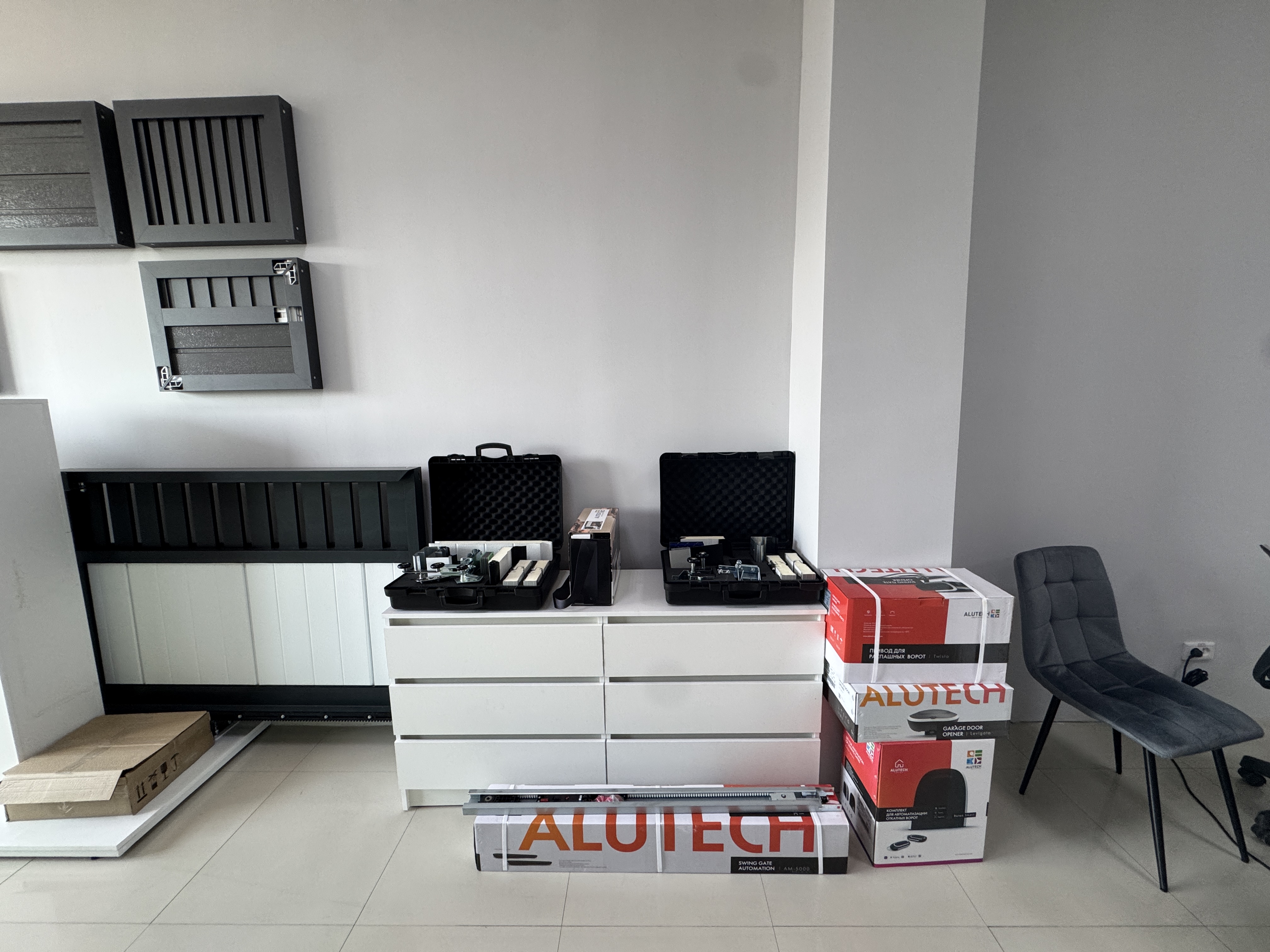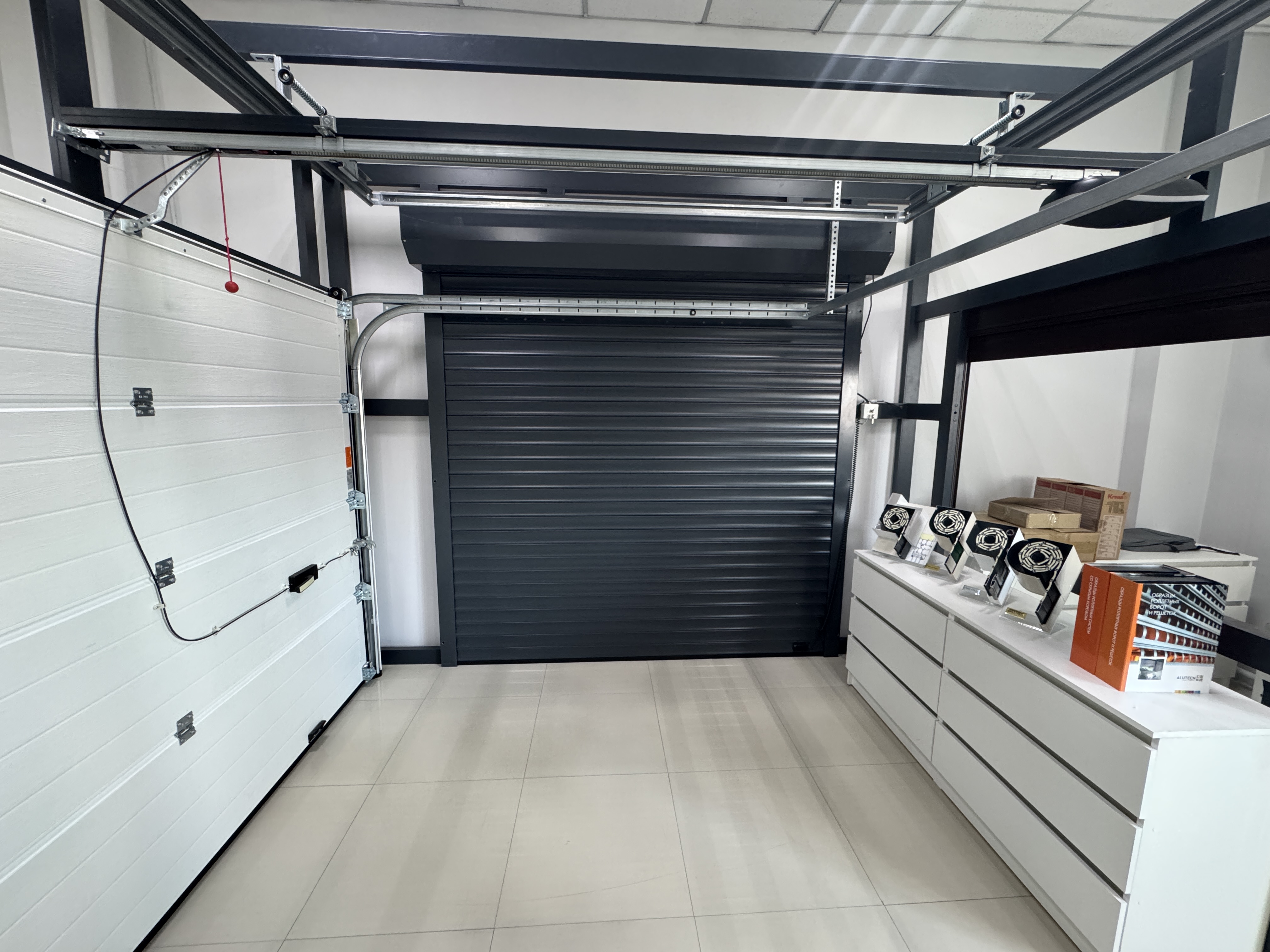 Новый шоу-рум — это не просто выставка, а полноценное пространство, где вы можете увидеть, потрогать и проверить в действии разные типы воротных систем. Здесь представлены: